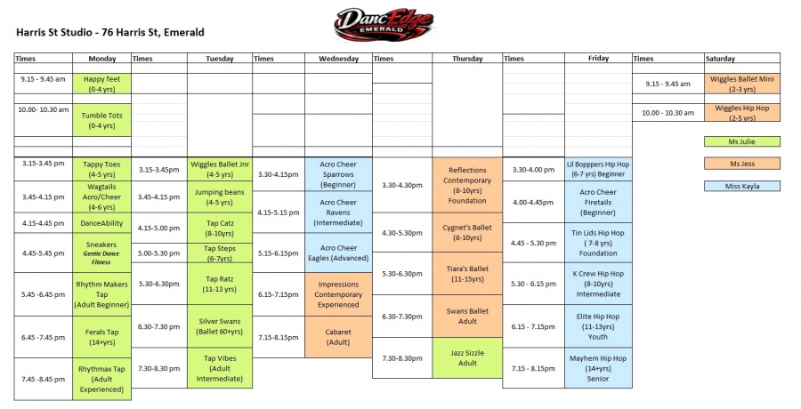 Harris St Hall Timetable